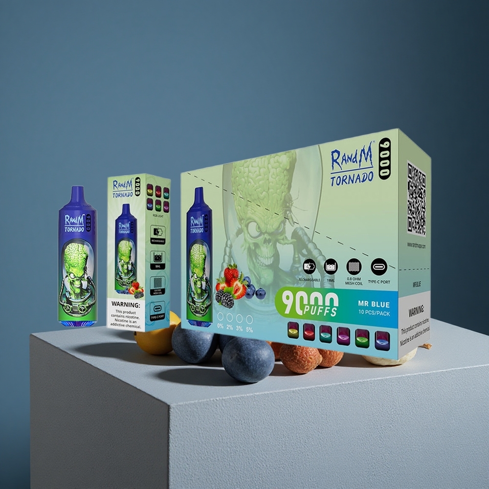 Blauwe RandM Fumot Tornado 9000 Puffs Herlaadbare Vape met RGB Display vape wholesale Netherlands