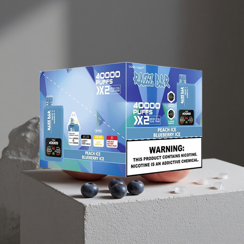 Perzik IJs_Blauwe Bes IJs Razz Bar Wegwerp Vape 40000 Puffs Power Screen Display Type-C Port vape wholesale Netherlands