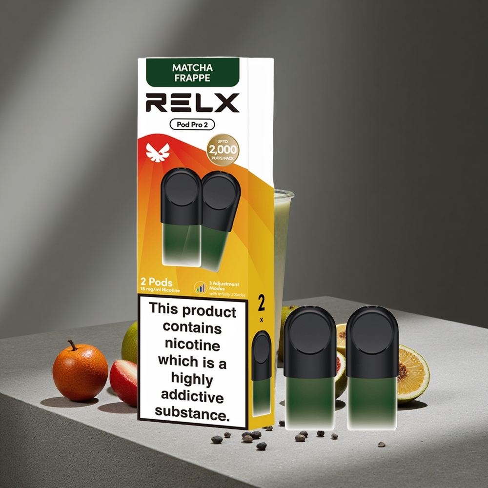 Thee-Matcha Frappe RELX Pod Pro 2 600 puffs Nicotinegehalte:1.8% Verpakking:2/3 pods vape wholesale Netherlands